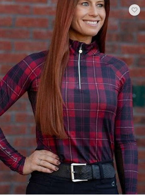 The elegant Blackberry Daze Riding Shirt is a premium 1/4 Zip top featuring a moody and captivating design that's a perfect nod to summer’s last lazy days. This rich pattern showcases vintage blackberry vines weaving to create a unique and sophisticated look, making it a standout piece for any equestrian. Crafted from a perfectly light, feather-weight fabric with an incredible 'ice feel', this equestrian sun shirt offers superior protection in warm temperatures or serves as a comfortable layering piece when the weather cools. Designed true to size and elegantly fitted, its longer length ensures it stays neatly tucked into your breeches for a polished look in the saddle and beyond.