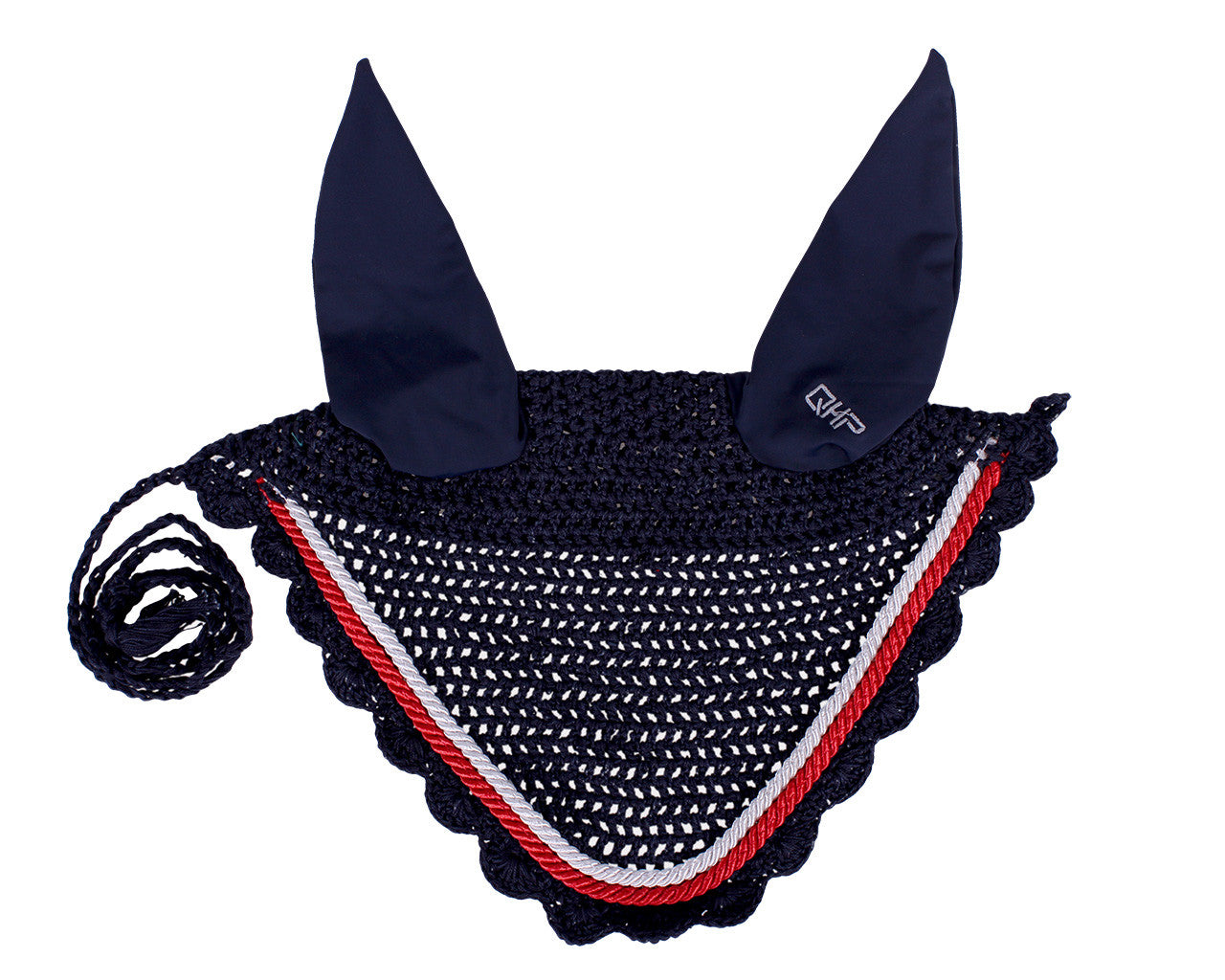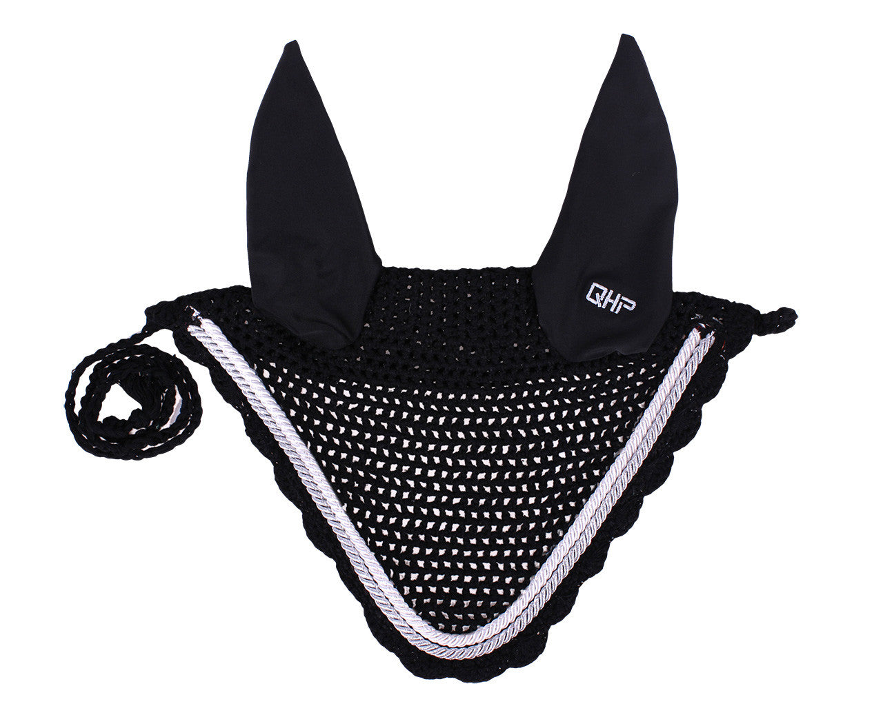 Crochet ear net with elastane ears for an improved comfort. Finished with two cords along the edge.