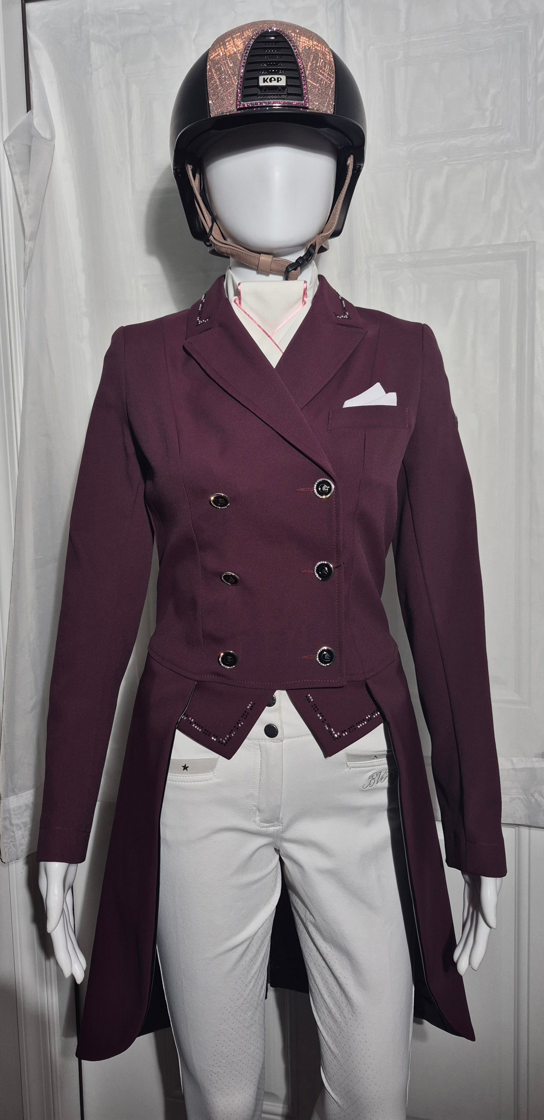 •Elegant, decorative embroidery with a horse motif and rhinestones on the collar, points and on the back