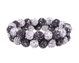 Elastic hair scrunchie with beads strung to sturdy elastic. The scrunchie is finished with small rhinestones on the beads for an extra chic look.