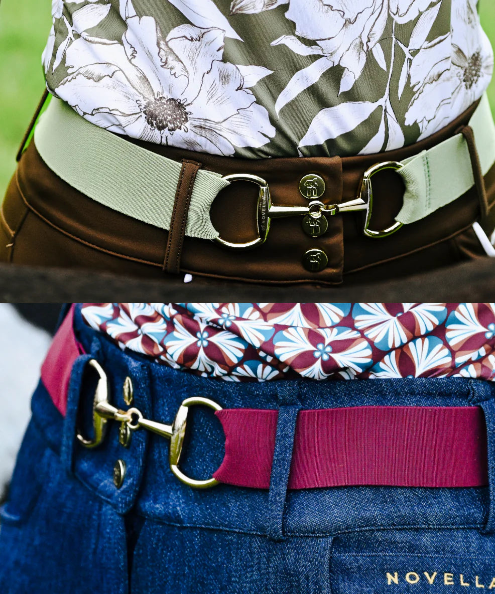 INSPIRED BY THE SIGNATURE NOVELLA GOLD ZIPPER, The Novella Snaffle Belt features an etched gold snaffle with the Novella logo to match every one of your Novella styles. This piece really ties your entire Novella look together! The elastic is 2 inches wide for great support and stunning finished look.