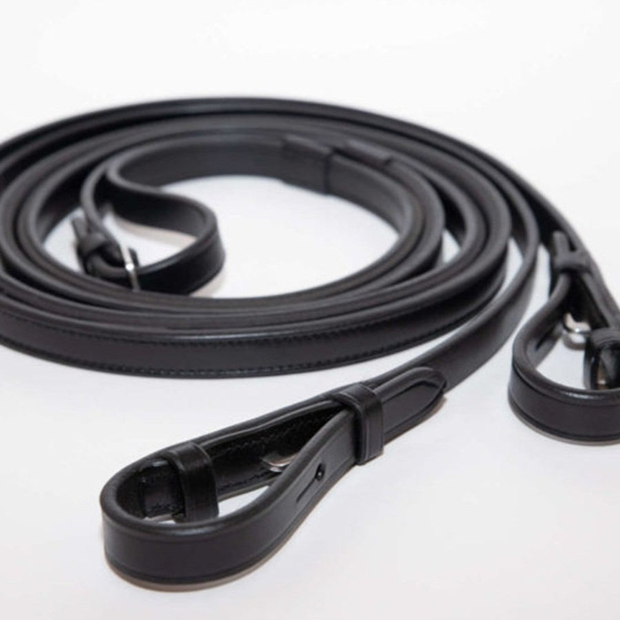 Provide your horse with the softest and most secure connection with our specially designed reins.Quiet stability of hand-to-bit contact is the key goal of all riders. The challenges with holding a rein can create tension. When the hand is tense, this tension moves from the hand all the way up to the shoulder. Losing a rein in a key moment is something we all wish to avoid. Our rubber grip style reins, wrapped in no-slip ThinLine, allows riders to have a soft, comfortable yet secure grip which translates to an elastic, sure connection to our horse.