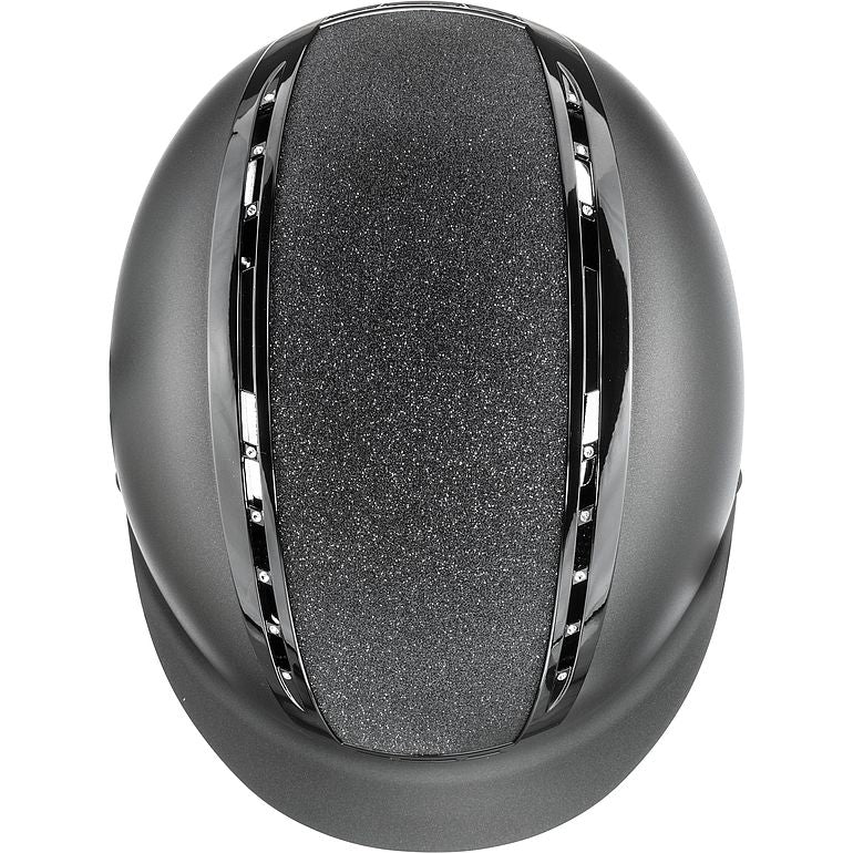 The uvex suxxeed starshine combines sporting flair with glamour. The refined mix of matt finished design elements attracts attention and highlights the luxurious character of the sporty riding helmet. Flamboyant use of glitter surrounding the high-gloss frame inset with Swarovski® crystals makes the uvex suxxeed starshine a real eye-catcher. Despite its extravagant appearance, the robust hard-shell helmet guarantees first-class performance. Supreme safety, extreme comfort and outstanding climate control at all times are additional standout features of the uvex suxxeed starshine.