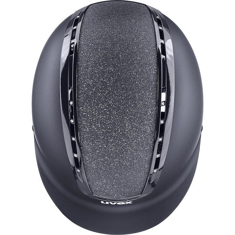 The uvex suxxeed starshine is the epitome of sporting elegance. Embellished with sparkling glitter and a shiny frame inset with Swarovski® crystals, the safe hard-shell helmet will become the highlight in any riding outfit.